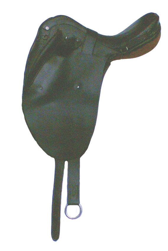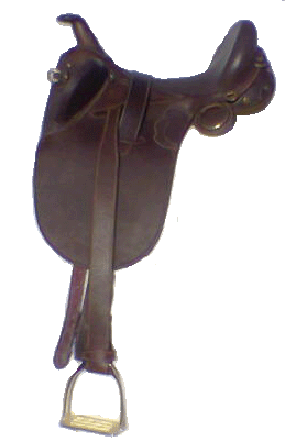 A few words about riding Aussie-style. Aussie saddles are not designed for serious jumping in! (The odd hop here or there is OK. To put this in perspective: you could pop over one five-bar gate, but not jump round Badminton!) They were designed to keep the Australian cattle workers securely on the horse over all kinds of terrain (including some scarily steep mountains), and had to be comfortable for long days in the saddle. The Aussie riding style is long-legged and relaxed, with the leg position being further forward than in English or Western styles. The rider's thigh should run parallel to the rear side of the poley, and around one inch away from it. If you have the correct size seat saddle for your height and weight, you have your stirrups adjusted to the correct length, and your leg in the correct position, the only time your thigh will come into contact with the poley is when it is supposed to - i.e. when descending steep slopes or if the horse puts in an emergency stop or a buck! If your thigh is rubbing uncomfortably on a properly-set poley, it means you are doing something wrongly! Cattle drovers' horses were not 'ridden from the leg to the hand', and drovers weren't interested in the horse being 'on the bit'. The horse was supposed to look after his own balance while the rider got on with the job in hand - so the reins were in general kept loose, and the horse responded to neck-reining. (An 'in Aussie style' bit would be, for example, the Australian long-cheeked loose-ring snaffle. This was adopted by the Fulmer School of Equitation in England decades ago as being a bit that the majority of horses work kindly in - and as a result it's now almost universally known as the "Fulmer Snaffle".) In general, the trot was 'sat' rather than risen / posted. If you do choose to rise to the trot in an Aussie saddle, remember that it wasn't really designed for it - so the 'rise' should be kept to a minimum - just enough to get your bum-bones clear of the bounce. An inch off the saddle is quite sufficient - anything more than this becomes, in any event, very tiring over long distances. |